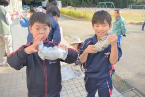 11月5日は、学校の畑で育てたサツマイモを使って、全校みんなで「やきいも集会」を行いました。