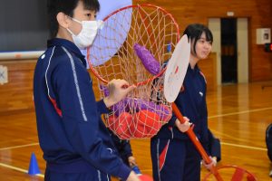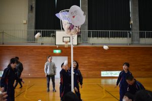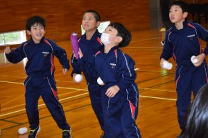 普通の玉にまじって、焼き芋の形をした特別な玉があり、これを入れると高得点。子供たちは「焼き芋は絶対入れんなん!」と声を弾ませながら、一生懸命投げていました。