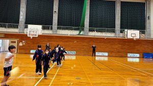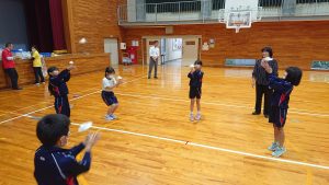 来賓や保護者の方々、教職員も参加し、リズムに乗ってジャンプしたり、
