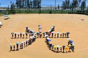 みなさん、コロナに打ち勝ち、笑顔あふれる毎日を送ることを願い、「光」という人文字をつくりましょう。そして、みんなの絆を深めていきましょう。