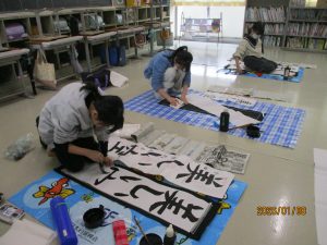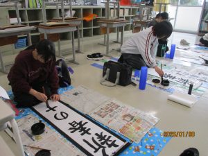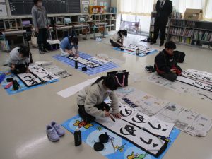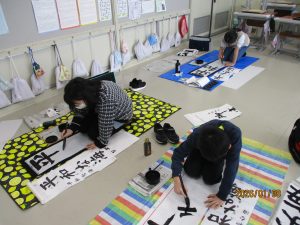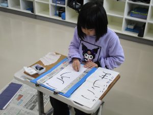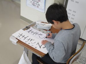 冬休みに練習してきた成果を発揮しようと、楽しみにしている子供もいれば、緊張している子供もいました。子供たちは真剣な表情で、一画一画丁寧に書き進めていました。