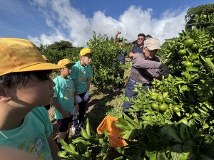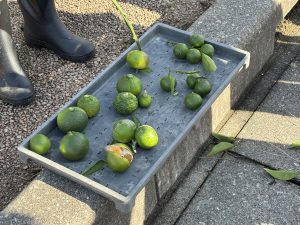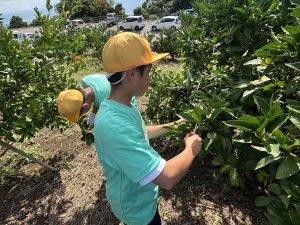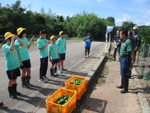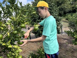 最後に、大きめの緑色のみかんをみんなで食べてみました。