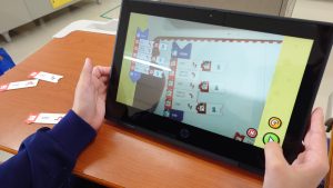 さらに、より簡単な指示でミッションをクリアできるように、子供たちは試行錯誤しながら命令ブロックを並べていました。