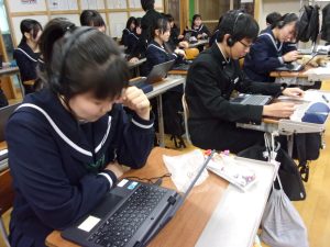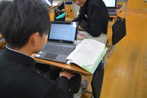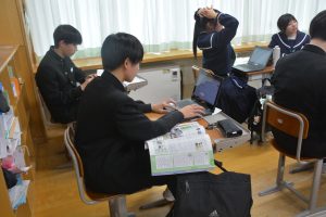 冬休み中に、調べる学校や内容等を決め、タブレットパソコンや「進路のしおり」を使って情報を集めました。
