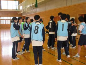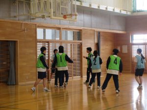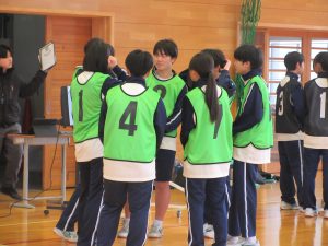 先生から出された課題「どのように防御境界線を突破すれば、相手よりもお得に得点できるか」を解決するために、各チームで話し合い、練習に取り組みました。