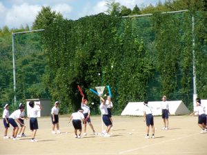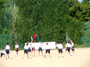 今日は、各団に分かれて、グラウンドとピロティ、アリーナでローテーションし、団活動を行いました。