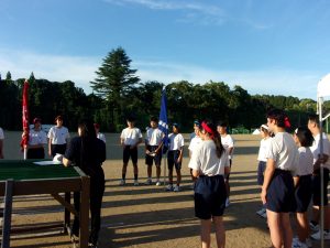 グラウンドでの団活動が終わったら、水分補給をして休憩です。