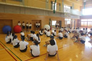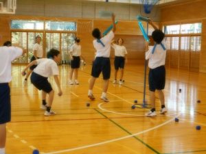 午後からは、残念ながら雨模様になったので、アリーナ、武道場、ピロティーに分かれて、団活動を行いました。