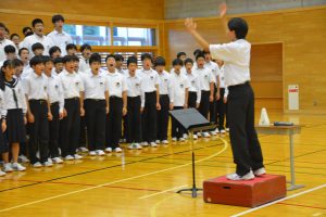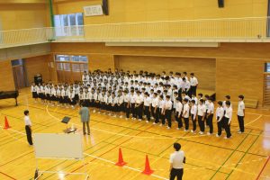 続いて、2年生は学年合唱、1、3年生はクラス合唱の練習をしました。