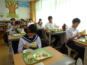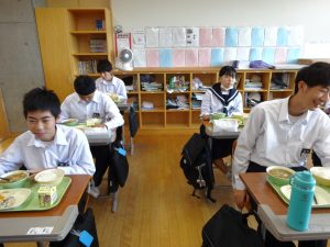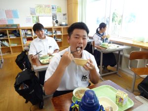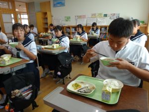 おいしい給食をしっかり食べた生徒たち。明日のテストも頑張りましょう!