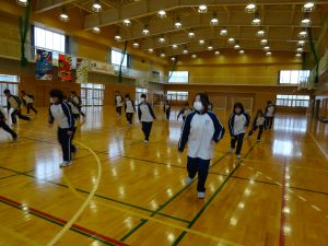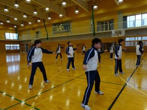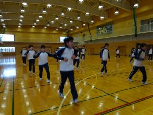 今日の3年2組の授業では、まず、課題曲のダンスの練習をしました。アップテンポの曲ですが、体全体を使ってしっかり踊っていました。