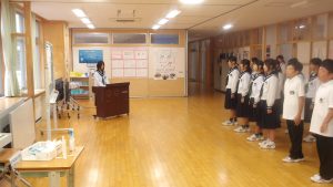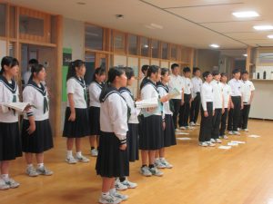 10月20日(月)の4時間目に3年2組と1年2組が合同合唱を行いました。