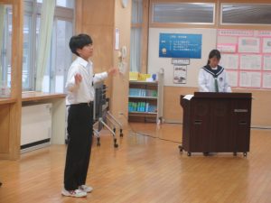 3年生からも「声がそろっている」「歌声のボリュームがでてきている」と褒めてもらい、1年生は嬉しそうな表情を浮かべていました。