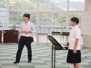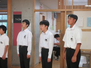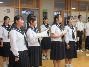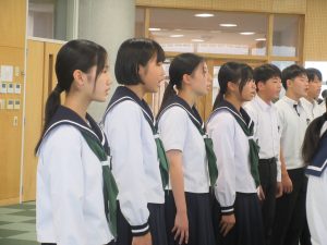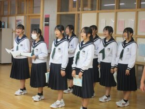 3年生の合唱を聞いて、1年生からは「各パートの声量がすごい」「ハモりの部分の聞こえ方がきれい」「歌うときの姿勢がかっこいい」などの声があがりました。