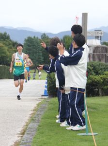 一緒に駅伝練習に参加してきた応援の生徒たちも、コースの各所に分かれて、声援を送りました。