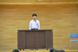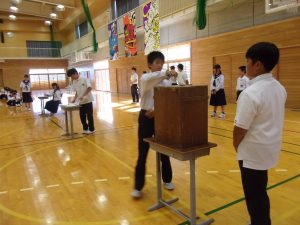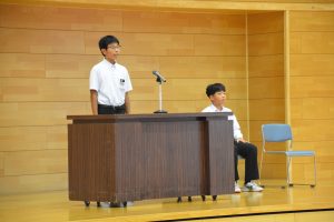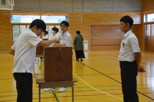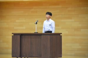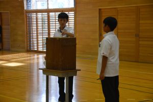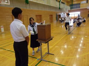 次に立候補者が、「全校生徒が協力しながら仲を深め、毎日が楽しい学校」を目指すとして、公約について熱く語りました。