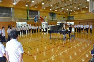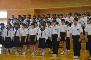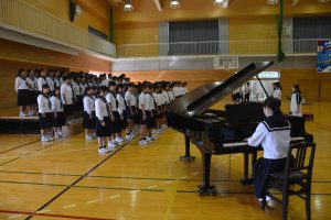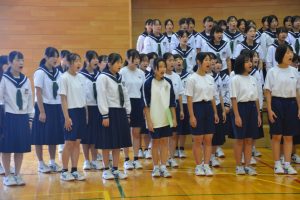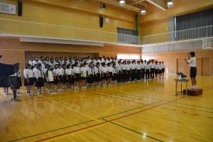 その後、再び体育館に集合し、歌声と気持ちを重ね合わせました。