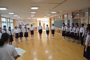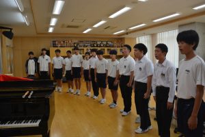 今日の3時間目に、コーラスフェスティバルで歌う全校合唱の練習を行いました。