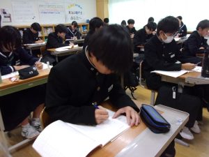 各学級では、範囲表を見ながら、各自でテストに向けての学習計画を立てました。
