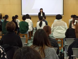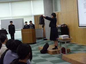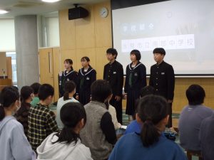 その後、後期生徒会執行部が、中学校生活について説明しました。