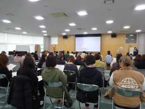 児童が授業を体験している間、保護者の方々は、SNSとの付き合い方をテーマに、グループワークに取り組まれました。