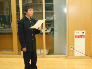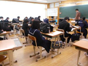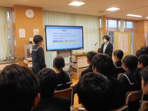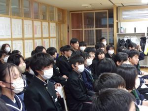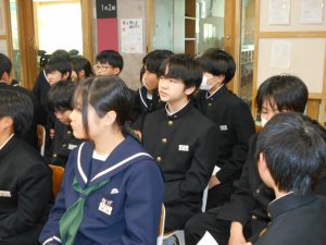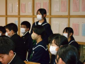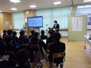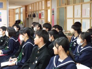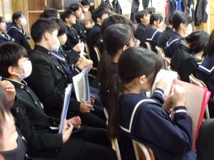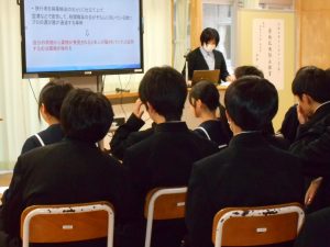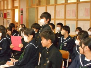 講師の先生からの質問に答える場面では、積極的に挙手をして質問や意見を述べる姿が見られました。最後には代表生徒が、学んだことをこれからの生活に活かしていきたいと決意を述べました。