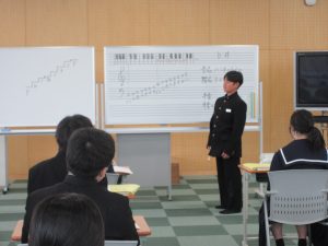今日の4時間目、1年1組は数学の学習に、1年2組は音楽の学習に取り組みました。