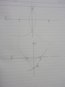 垂線の作図の仕方を学習しました。