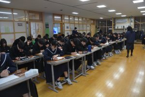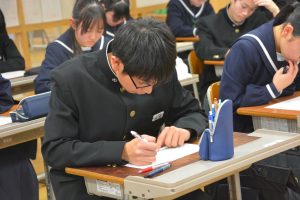 一年間の締めくくりとなる期末考査まで一か月を切りました。今日の学びを糧に、これからも自分と向き合いながら、勉強に励んでほしいと思います。