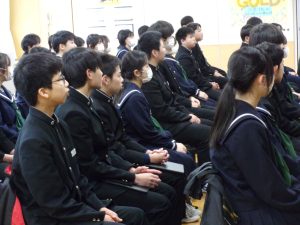 3年生は、2月5日(木)に行われる私立高校一般入試に向けて学年集会を行いました。