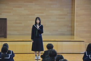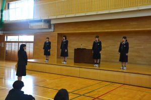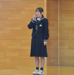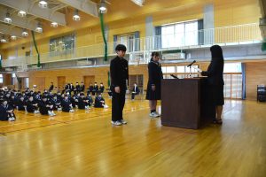修了式では、はじめに、1・2年生の代表生徒が、3学期を振り返りました。