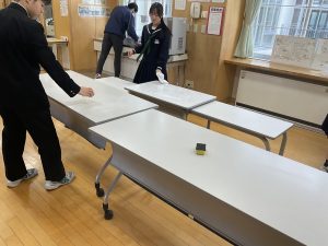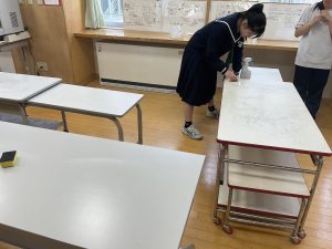 配膳台もピカピカに!給食委員が配膳台を大掃除!