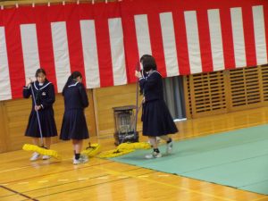 本日の3限目に、2年生が卒業式に向けた式場設営をしました。