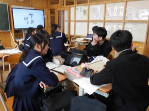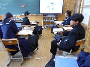 生徒たちはこれまで、自分で設定したテーマについて調べ、分かりやすく伝えるためにタブレット端末を使ってスライドを作成してきました。