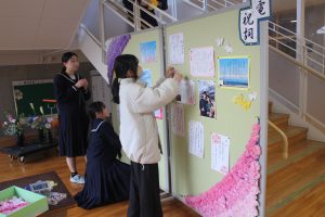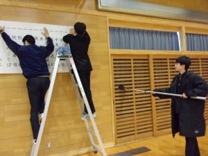 午後は、これまで学校の中心となって、みんなをリードしてくれた3年生へ心を込めて、1・2年生が会場の飾り付けを行いました。