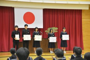 また、賞状伝達式も行い、3年生にとっては、最後の表彰を受けました。