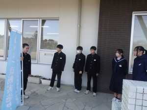 今朝、風紀委員会が、今年度最後のあいさつ運動を行いました。