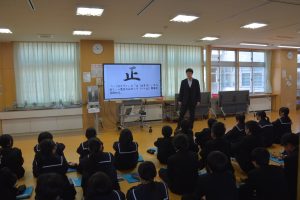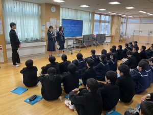 本日の学年集会にて、金沢校外学習のテーマが力強く発表されました。