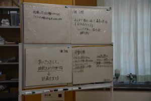 集会では、当日を共に過ごす班のメンバーや係の決定を行いました。その後の班ミーティングでは、「テーマを達成するために、どんな行動をしたらよいか」「時間をしっかり守ることを目標にしよう」などと、和やかに、かつ真剣に話し合いを進めていました。