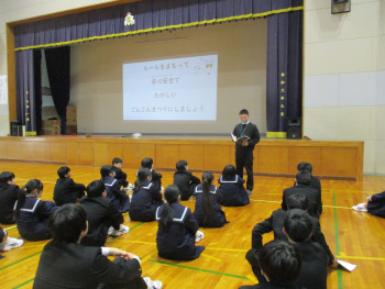 全校児童生徒が共通して気を付けるマナーや、自分の身を守るためのルールの話を聞きました。