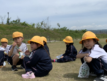 今日は、その飾りの色や形をよく見て、想像を膨らませながら画用紙に貼っていきました。