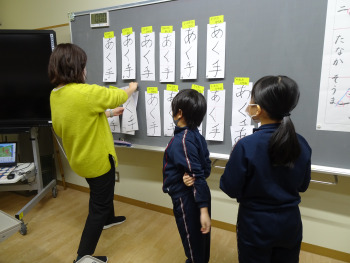 先生が書いたお手本を見て「すごい。きれい。じょうず。」と言い、自然と拍手が起きるのは何とも