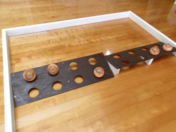 たこ焼きに見立てたボールを穴に入れて、たこ焼きプレートを完成させます。