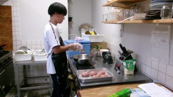 今日は、水曜日と同様にハンバーグを作りました。慣れた手つきで作っています。