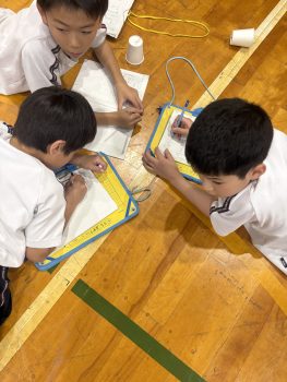 他にも「4人でも聞こえるのかな」と、自分たちで考えたやり方で実験している子供もいました。