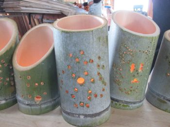 その第二弾である今回は、切った竹を使い、竹灯篭を作りました。