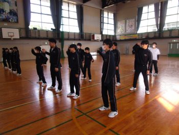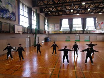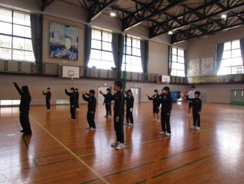 9年生は、昨年度よりも複雑で素早い動きのある振り付けでしたが、講師の先生の指導に一生懸命食らいついていました。