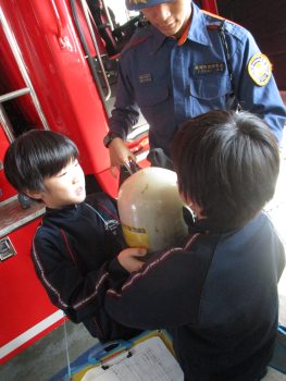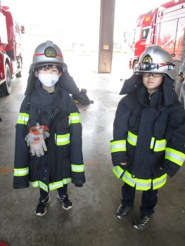 消防士は24時間働いていることや、火事がない時はトレーニングをしていることを教えていただきました。