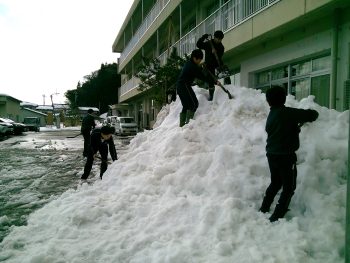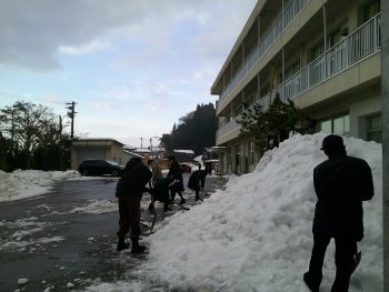 8年生に続き、今朝は7年生が早くに登校し、除雪を行いました。