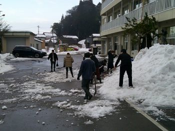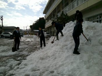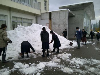 そして昼休み、前期後期課程をまじえた4人の男子生徒が、自主的に除雪を行いました。